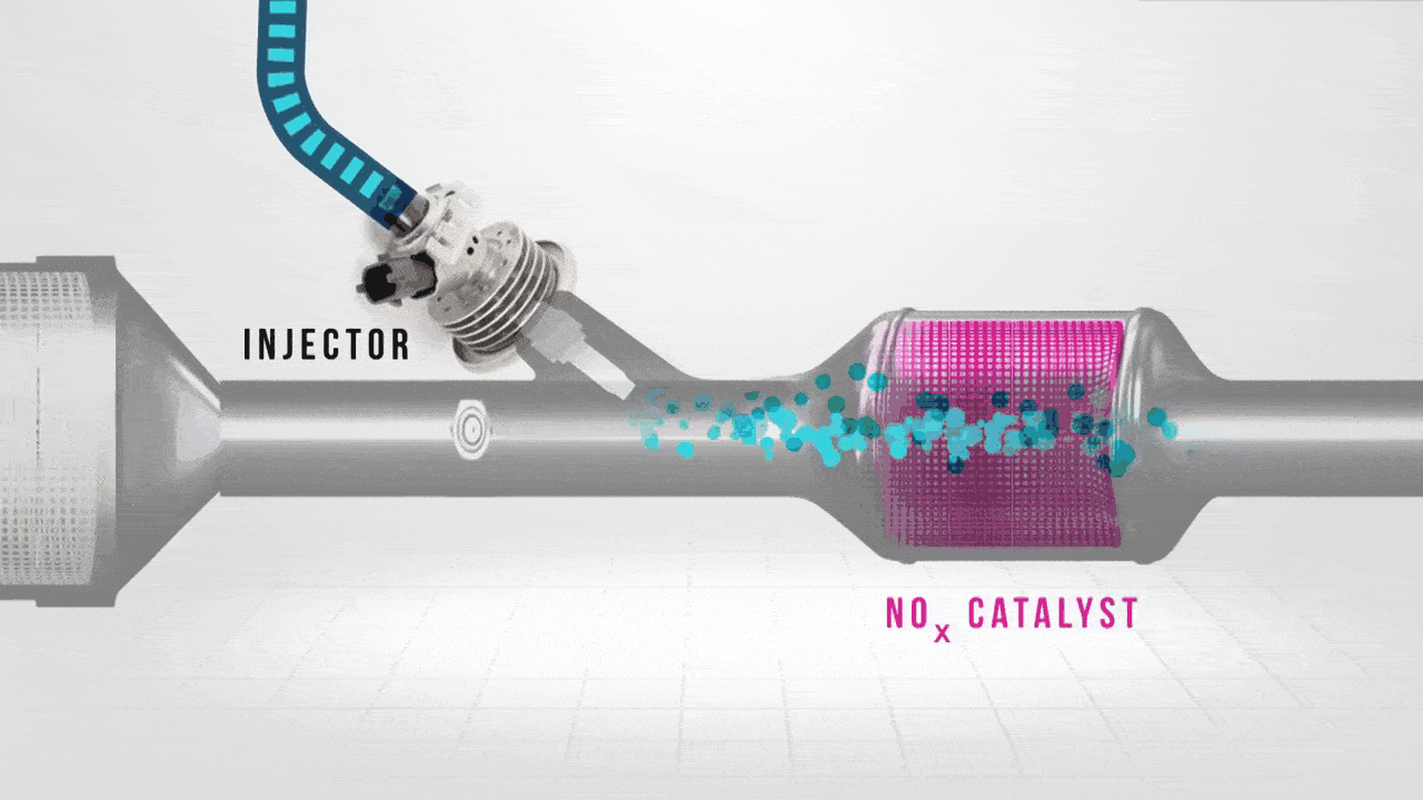 SCR sustav ubrizgava AdBlue® izravno u ispušni tok. Kada uđe u katalizator, reagira s dušikovim oksidima iz sagorjelog dizela – proizvodeći neopasan dušik i vodu koji se prirodno pojavljuju. Zbog svoje izvanredne čistoće, AdBlue® našeg sustava ne oštećuje SCR sustav niti smanjuje njegov vijek trajanja.